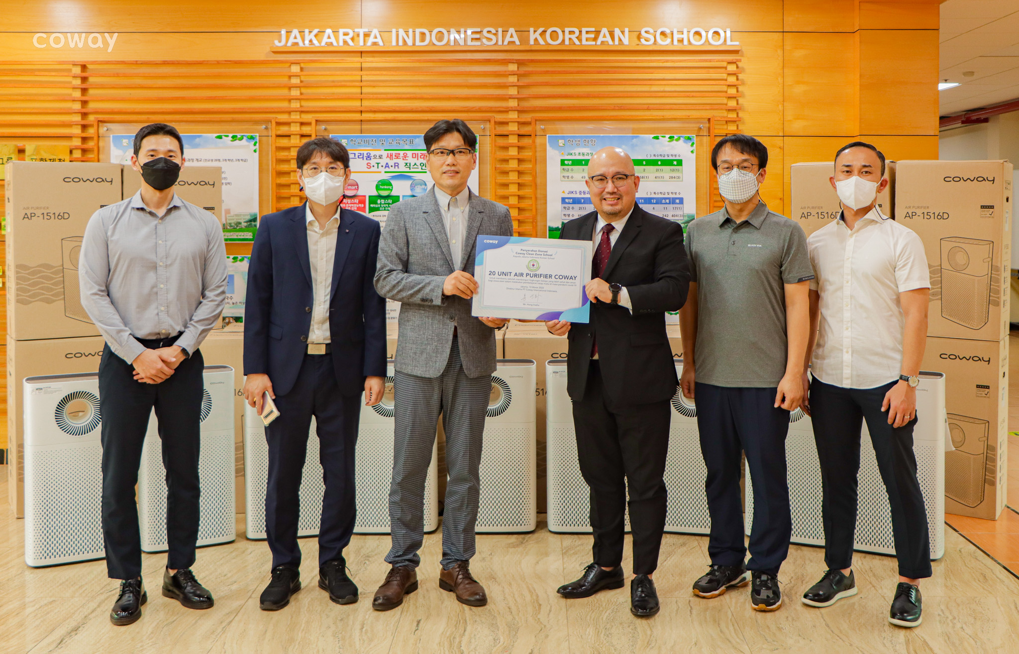 Coway, sebagai perusahaan Home Appliances yang memproduksi Water Purifier (pemurni air) dan Air Purifier (pemurni udara) mendonasikan 20 unit Air Purifier di ruangan-ruangan kelas dan ruangan kerja JIKS.
