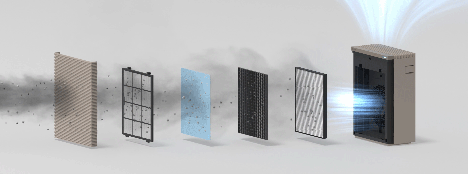 Sistem Filter Air | 1st : Pre-Filter 2nd : Air Matching Filter 3rd : Deodorisation Filter 4th : High Efficiency Filter |